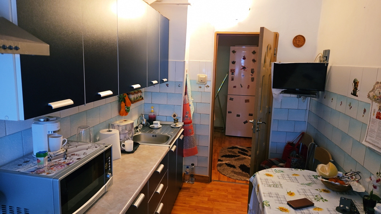 Semnele de infiltrații vizibile pe tavane indică probleme din perioade anterioare. Hidroizolația blocului a fost refăcută în 2024, însă imobilul nu a fost renovat sau zugrăvit în anii recenți, ceea ce explică prezența defectelor vizibile la nivelul suprafețelor interioare.